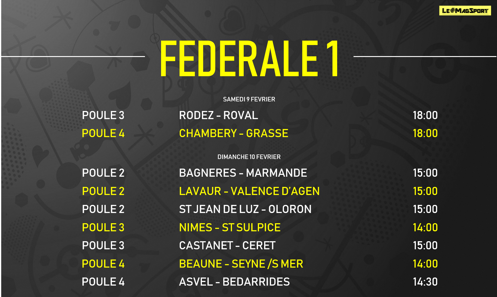 Ce week-end du 9/10 février 2019, se déroulera les épreuves de rattrapage, non pas du Bac, mais de la Fédérale 1. Toutes les poules sont impactées, sauf la poule 1, bon élève météorologique du championnat. Focus sur ces 9 matchs.