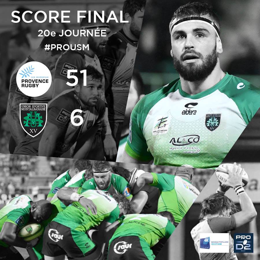 A Montauban, sur l’autel d’un regain de forme naissant, certains supporters et suiveurs se mettaient à rêver d’une folle « remontada » pour accrocher les play-offs. Il est vrai qu’arithmétiquement parlant, cela pouvait se laisser entendre, mais le sport qui plus est le rugby, est surtout sujet au dogme des dynamiques. Celles des pensionnaires de Sapiac, n’est pas des plus porteuses cette saison, et les Bosviel et consorts viennent de subir, un dur retour de flamme. En déplacement chez le promu provençal, les « Gars de Jeff Dubois » ont littéralement bu le calice jusqu’à la lie. Conquérant en début de rencontre, les Sapiacains ont totalement explosé en vol au coeur du match (entre la 30eme et la 50eme). Le Capitaine de Provence Rugby (Joe Edwards), a montré la voie en inscrivant la bagatelle de 3 essais(34e, 41e et 49e), imité par ses frères d’armes : Tuapati (37e), Tuamalolo (44e) et Massip (64e). Avec ce 51-6, qui sonne comme une gifle cinglante, le club de la préfecture Tarn et Garonnaise joue à se faire peur, et flirte à nouveau dangereusement avec la zone rouge. La réception d’un des favoris à l’accession en Prod2 (Brive) et le déplacement en terre Montoise, met l’USM dos au mur. Dans cette ville de garnison, qu’est Montauban: il va falloir se mettre rapidement en ordre de marche, si la cuvette de Sapiac, ne veut pas re-goûter au mitard de la fédérale.