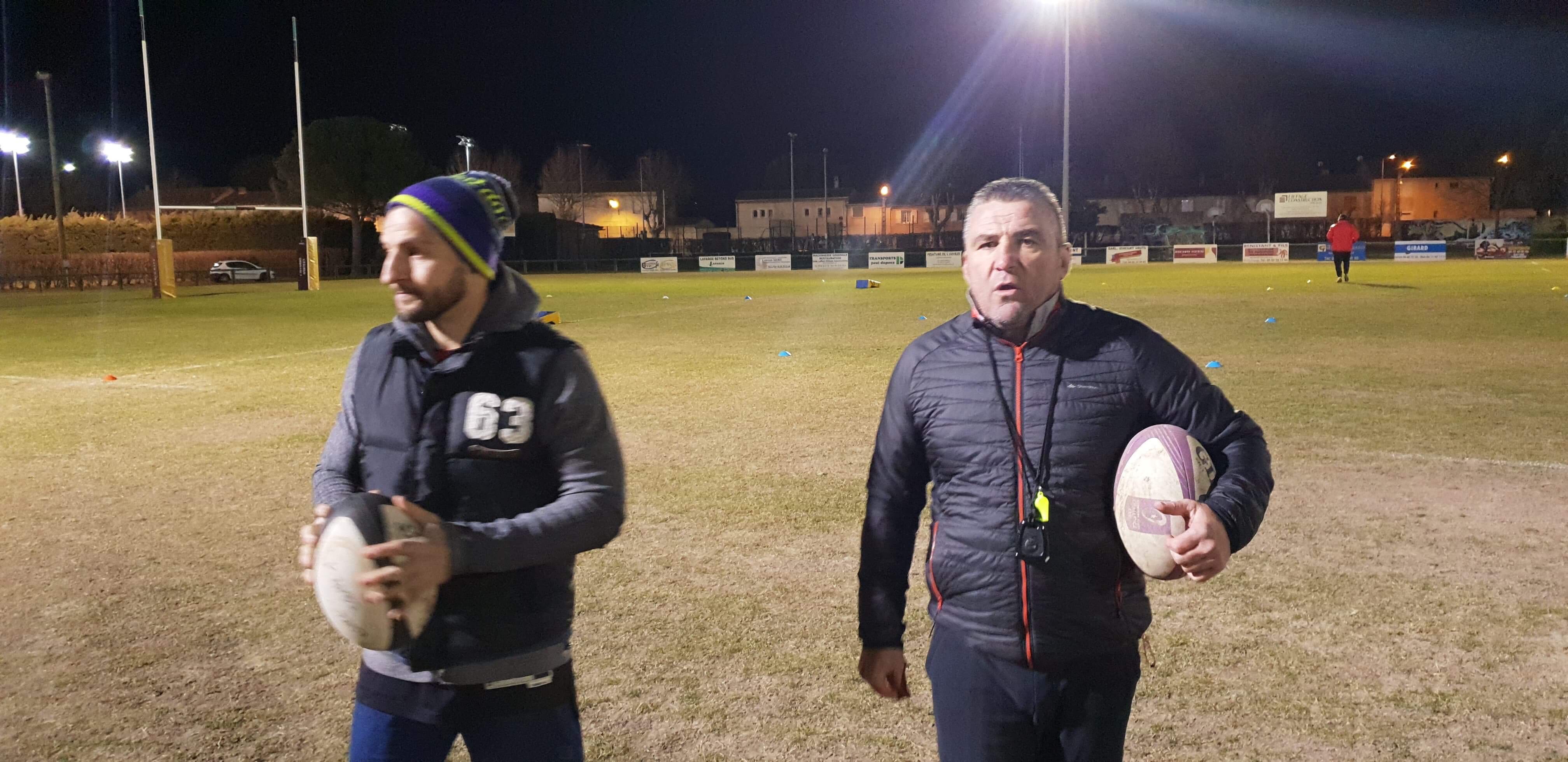 Hervé Di Noia (droite)le nouveau entraineur général de l’ASBC et Philippe Laborde son adjoint / Crédit photo ASBCIl vaut mieux dans ses périodes de turbulences, nommées des personnes connaissant le contexte et pouvant supporter le poids d’une pression qui sera maximale lors de la sulfureuse réception de Grasse (match en retard face à la lanterne rouge). « Beda » actuellement antépénultième à égalité de points avec l’US Seynoise (premier relégable), doit se mettre en mode commando. Pour relever le défi, la direction du club a choisi de faire confiance à une solution interne : Philippe Laborde, actuel coach des espoirs qui entraînera désormais les lignes, arrière. Mais aussi à une solution externe, avec Hervé Di Noia qui sera le nouveau manager général. Enfin, pas, tout à fait, car il a déjà coaché au pays des vignobles