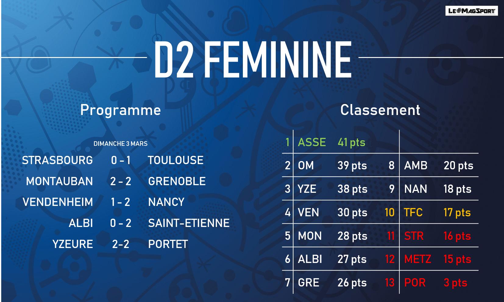 Pour l’ASSE, pour une fois, on ne voyait pas la vie en vert, mais plutôt en rose : car non loin d’exploser en 1re période, les stéphannoises ont su sans s’affoler, attendre leur heure et faire preuve d’une maturité collective salvatrice. Un comportement digne d’une équipe de D1F. Ca tombe bien, elles sont au terme de ce match, à nouveau les leaders de la poule B de D2F et tiennent plus que jamais la corde pour l’accession. Dans le Forez, on commence à sérieusement à se dire : « Que le retour dans l’élite n’a jamais été aussi proche ».