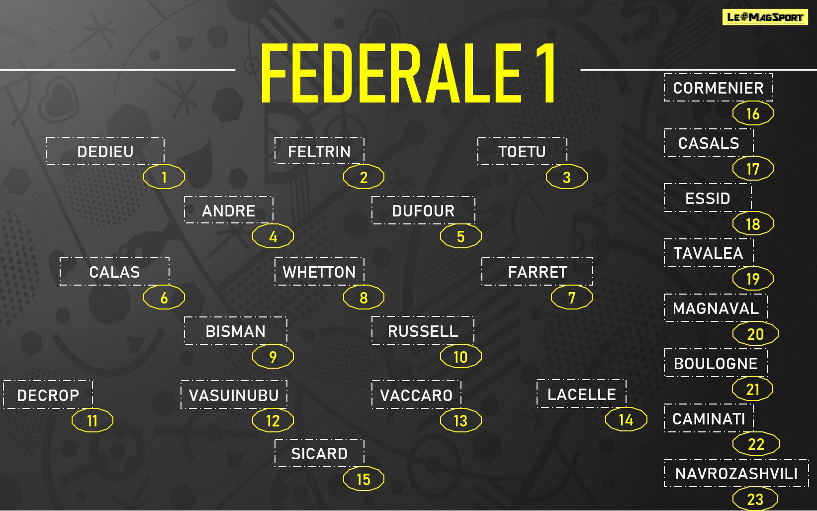 Magnaval -21.Boulogne-22.Caminati-23.Navrozashvilli-24.Bertrand -25.Tafili