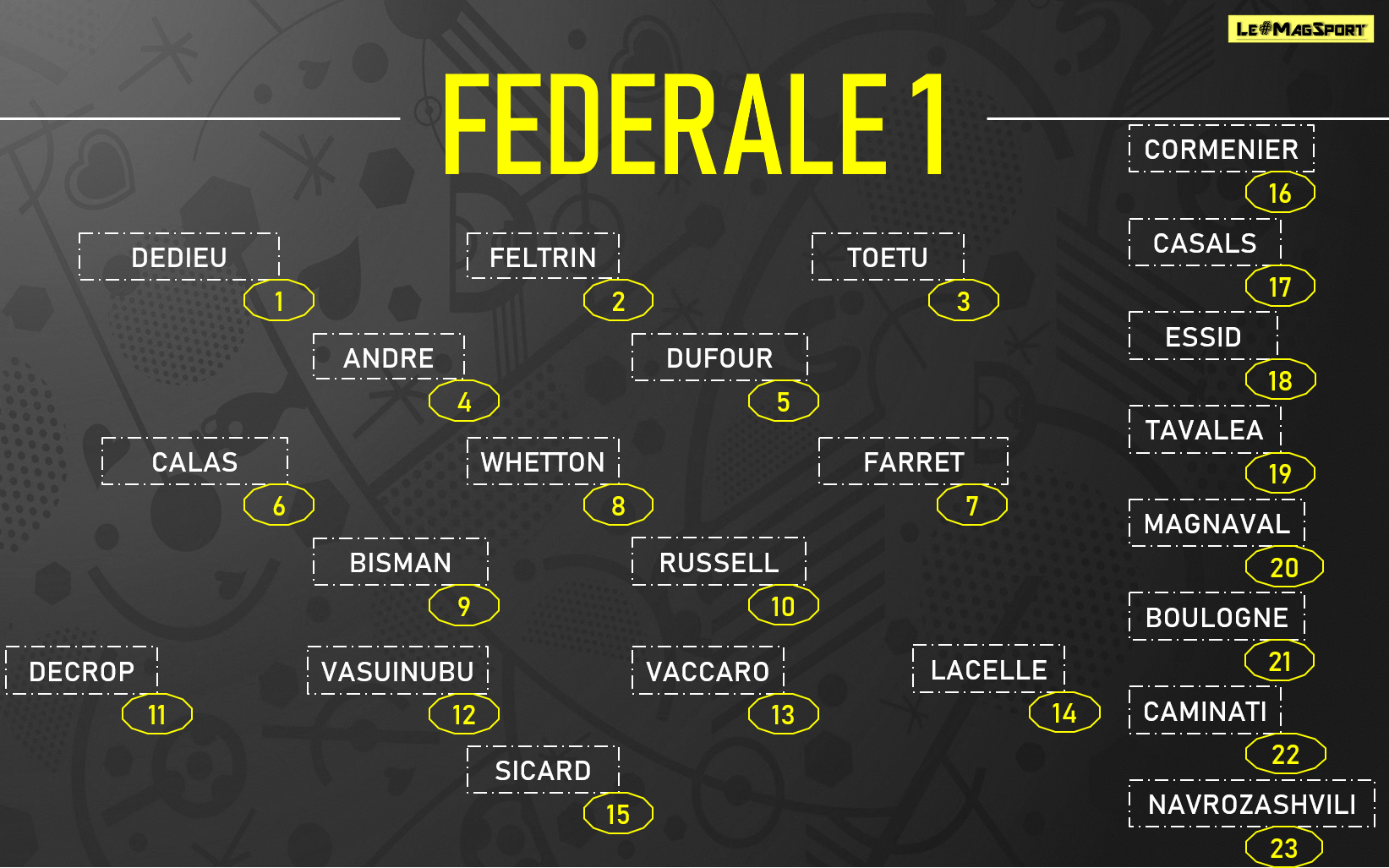 Louis Decrop de retour après une blessure au coeur de l’hiver Thomas Lacelle l’inévitable ailier albigeois, le retour comme titulaire de la pépite Paul Farret et Benoit Sicard qui renoue avec ses premiers amours : l’Arrière. Mais aussi la paire Vasuinubu/Vaccaro peu alignée ensemble cette saison et Jérémy Russell qui va vouloir prouver qu’il est loin d’être une doublure. La titularisation de Jérome Dufour, risque aussi, d’amener beaucoup de volume de jeu au pack.
