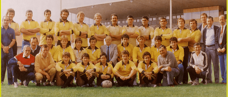 Pour le premier match de l’histoire le 19 Septembre 1982, le score fut très serré, et pourtant ce n’est pas faute d’avoir essayé, les hommes du coach Roland Bacca étaient souverains devant, avec une 1ère ligne composée de Stachorko, Sanchez et Maraval bien appuyés par Acquier et Benard, il y avait de quoi avancer… Mais les locaux avaient dans leur rang un certain Harize, qui pour une fois officiait au centre, hélas seul un essai de « Jacquot » Maraval et 3 pénalités de Fernandez permettront la première victoire Albigeoise. Tyrosse prendra sa revanche au match retour, match arbitré par un certain René Hourquet, les Tyrossais marquant un essai par Dominique Visensang.