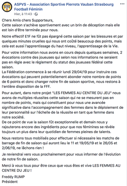 Le communiqué de l’ASPVS – Association Sportive Pierrots Vauban Strasbourg Football Féminin