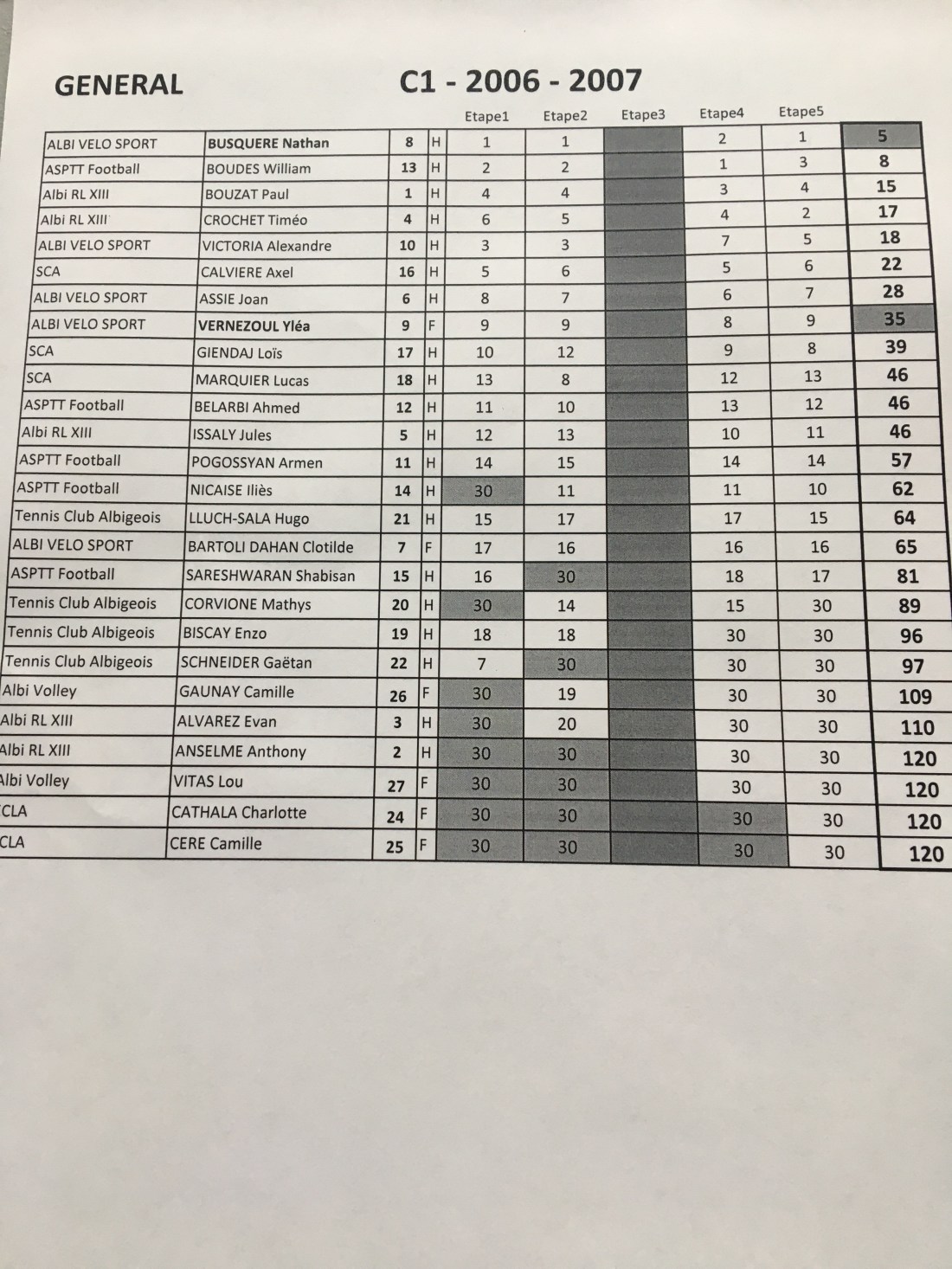 Le Classement étape 5 (catégories 2006-2007)