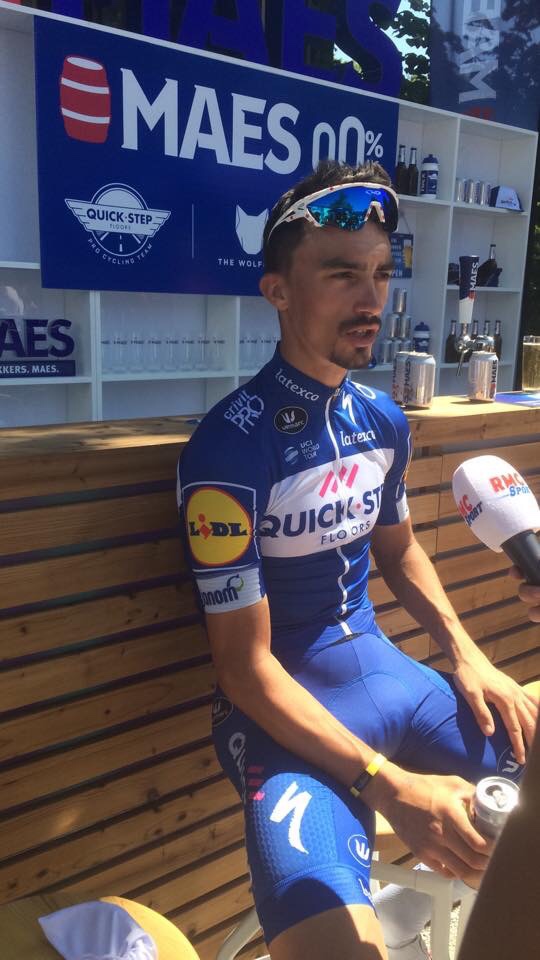 « On n’a pas vraiment le temps de se parler, on est chacun concentré sur notre course. Il fait la course avec son équipe, je fais la mienne avec Quickstep. C’est la course au maillot dont forcément, on a beau bien s’entendre en dehors du vélo, sur le vélo, il fait la course contre moi et c’est tout à fait normal. Je fais aussi la course pour garder le maillot. Il n’y a rien d’antisportif, il n’y a rien de mal dans tout ça. C’est tout simplement le cyclisme en fait. »