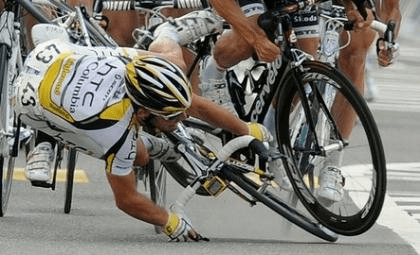 Les sprinters sont souvent les plus touchés par des chutes lourdes de conséquences. Une des plus spectaculaires et encore vivace dans toutes les mémoires, est celle de Laurent Jalabert à Armentières dans le Tour de France 1994. Le sprint est lancé à 200 mètres de la ligne d’arrivée, un gendarme prend une photo il est percuté par le belge Wilfried Nelissen en plein effort. Le choc est terrible, Nelissen entraîne plusieurs coureurs avec lui dont l’italien Fabiano Fontanelli. Le tarnais est relevé avec plusieurs fractures au vissage, mâchoire et dents cassés. Cette chute marquera la fin de la période de sprinter de Laurent Jalabert, et ouvrira la page de coureur complet puisque son palmarès s’enrichira, entre autre, de 3 Paris-Nice, Tour d’Espagne, Tour de Lombardie, 2 classiques de San Sébastian, Milan San Remo, un titre de Champion de France et de champion du Monde du CLM.