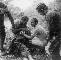 Il est relevé avec une double fracture des vertèbres. Il restera paralysé plusieurs semaines.