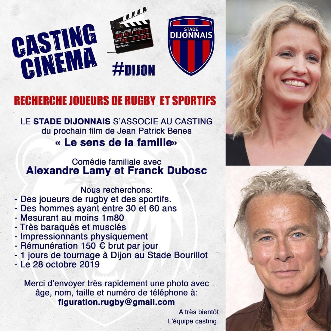 Frank Dubosc et Alexandra Lamy seront les têtes d’affiche du prochain film de Jean – Patrick Benes, « le sens de la famille » , dont une partie du tournage devrait avoir lieu au stade Bourillot, antre du Stade Dijonnais.