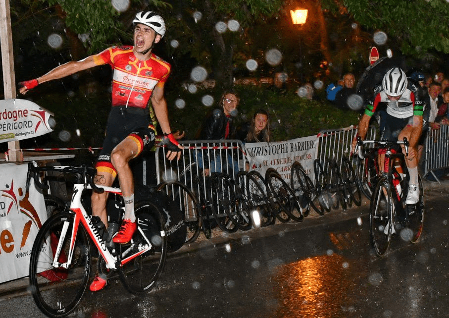 Loîc Szewe a tout juste 22 ans, enlève le Grand Prix de Montpazier (24) devant le coureur de DN1 Pierre Bonnet du Team Pro Immo Nicolas Roux.