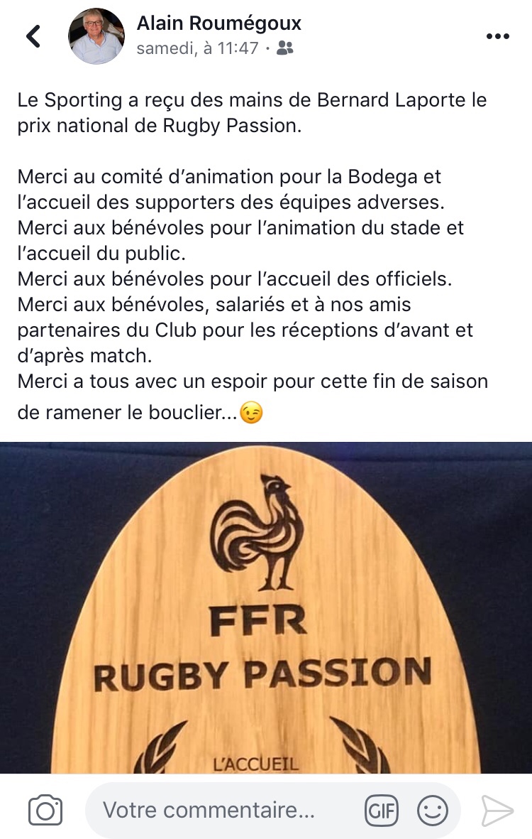 Les albigeois cette saison rencontreront Mauléon dont le President n’est autre que Benat Queheille, le paternel de l’ex demi de mêlée jaune et noir Gilen Queheille (Colomiers). Mais la filiation présidentielle trouvera un autre écho lors des derbys tarnais entre Albi et Graulhet. Car Alain Roumegoux n’est autre que le fils de André « Dédé » Roumegoux le président du SC Graulhetois de la grande époque (76-81 et 89-92). Pour l’actuel président albigeois, qui a grandi à l’ombre des travées de Pelissou, il est fort à parier que ce retour par la porte présidentielle dans son jardin d’enfance, revêtira un certaine dose émotionnelle. Quand on dit que le rugby est une grande famille, ce n’est pas qu’une boutade.
