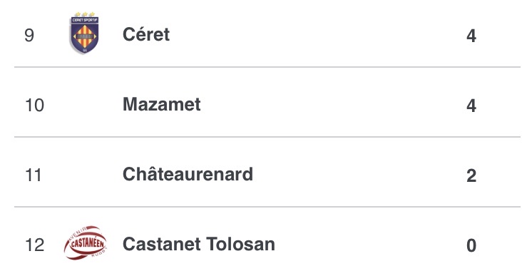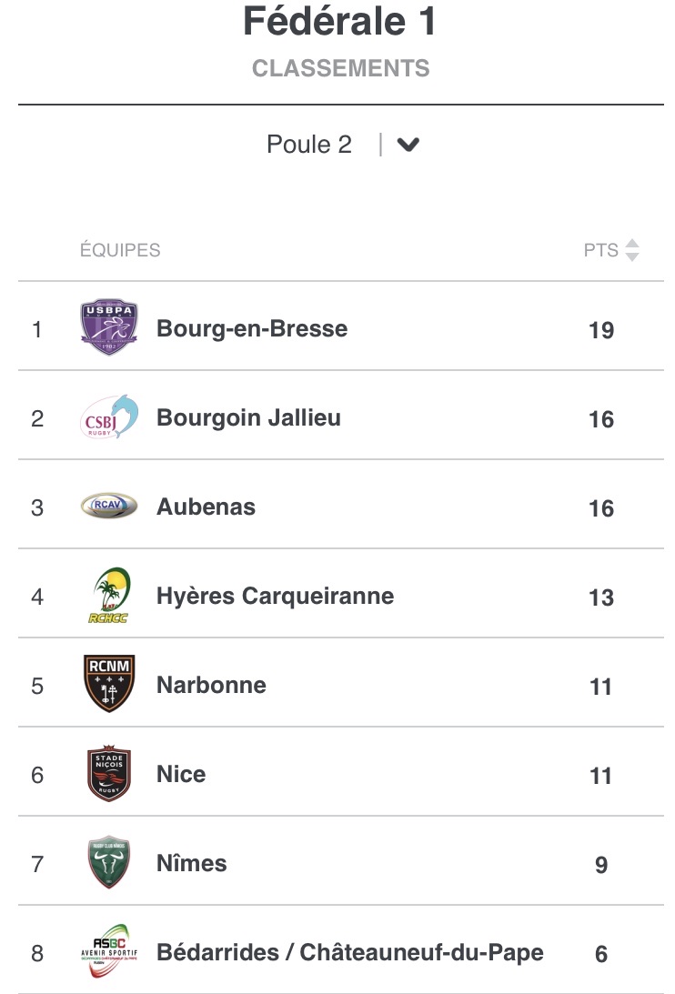 – Bourgoin 18 / 18 Narbonne