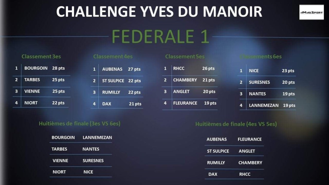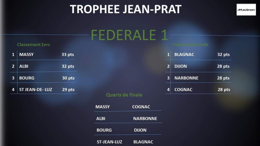 Notre rédaction s’est amusée à réaliser une petite projection sur les playoffs du « Jean Prat » (accession ProD2) et du « challenge Yves Du Manoir » dans ce championnat de fédérale 1 qui vient de vivre une 7 eme journée trépidante.