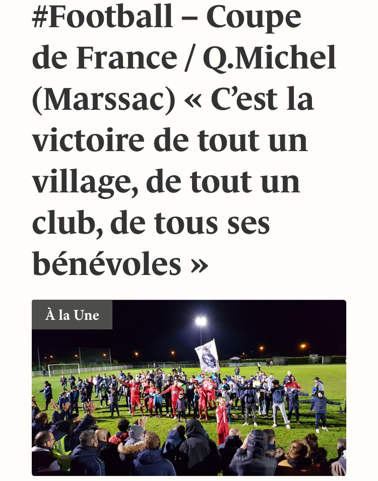 Le dernier représentant Tarnais lors de cette édition 2019-2020 de la coupe de France, vient de connaître ce mercredi 20 novembre 2019, son adversaire pour un 64 eme de finale historique. Pour cette nouvelle page du livre d’or du Marssac RSRDT, le club de la périphérie albigeoise hérite, des béarnais du Pau FC, lors d’un tirage au sort effectué à 14h au Stade de France par Anthony Réveillère. Face aux leaders du championnat National (3 divisions au dessus), les Marssacois, dans une rencontre qui sera sûrement délocalisée au stade Maurice Rigaud d’Albi, vont devoir créer un nouvel exploit si ils veulent entrevoir les écuries de ligue 1. Retrouvez les réactions du capitaine du MRSRDT David Maurice, du coach Mickael Bertrand et celle d’un des buteurs lors du tour précédent, l’ancien joueur du RC Lens et de Nîmes , Jonathan Lacourt.
