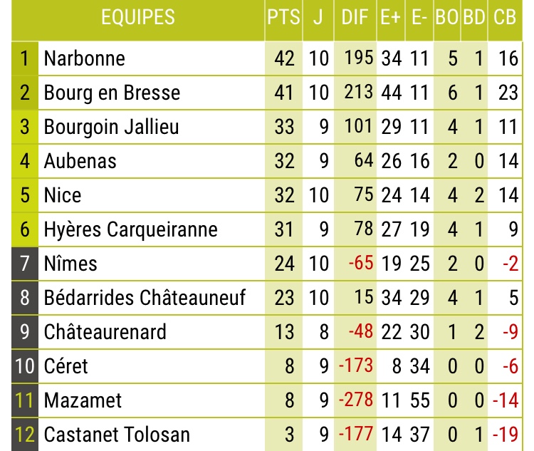 Retrouvez l’intégralité des résultats et classements de fédérale 1, lors de cette 10e journée des 29/30 Novembre et 01er Décembre 2019.