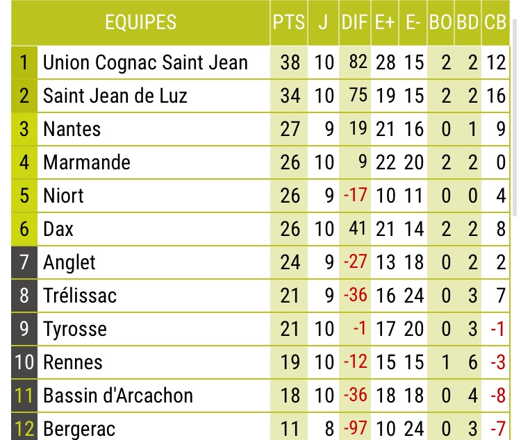 – Union Cognac-St-Jean-d’Angely 42 / 14 Trelissac (01/12 15h)