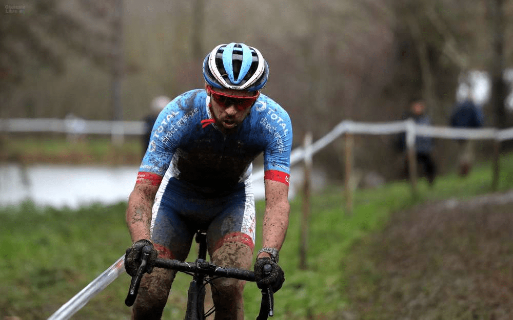 Lilian Calmejane en plein effort lors du cyclo cross de Montbron-Eymoutiers en Charente.
