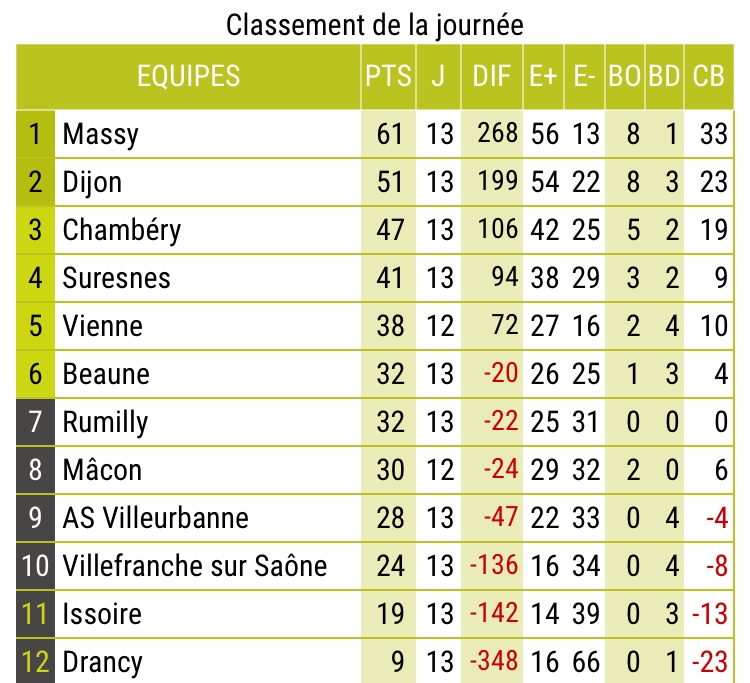 Retrouvez l’intégralité des résultats et classements de fédérale 1, lors de cette 13e journée des 11 et 12 Janvier 2020.