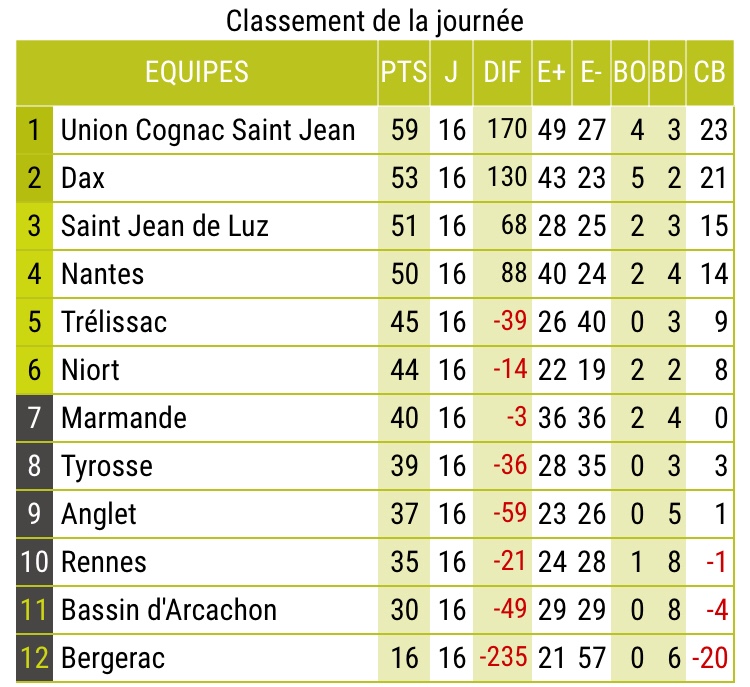 Retrouvez l’intégralité des résultats et classements de fédérale 1, lors de cette 16e journée des 14/15 et 16 Février 2020.