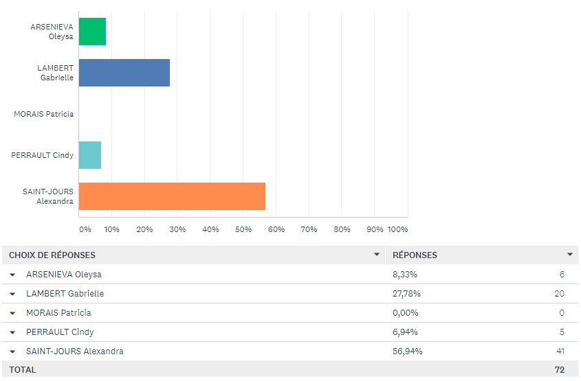 Olesya ARSENIEVA – Gabrielle LAMBERT – Patricia MORAIS – Cindy PERRAULT – Alexandra SAINT-JOURS