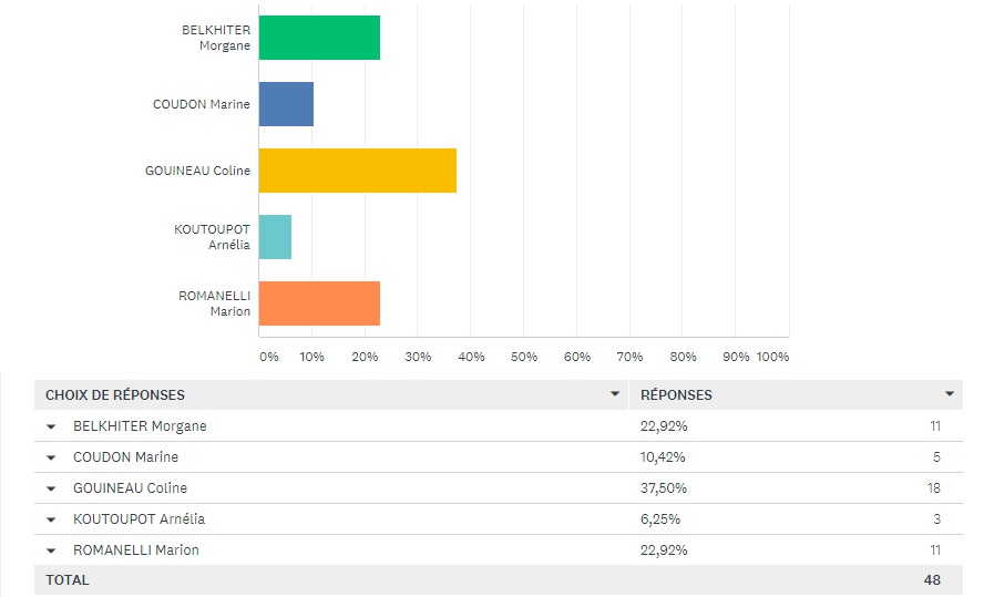Morgane BEKHITER – Marine COUDON – Coline GOUINEAU – Arnélia KOUTOUPOT – Marion ROMANELLI
