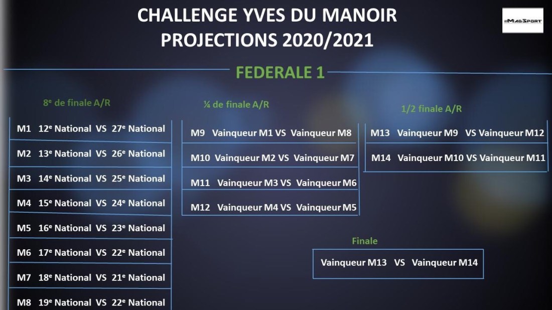 Du fait du passage à 5 poules de 12, en lieu et place de 4, la saison passée, uniquement les 3 équipes restantes parmi les meilleurs troisièmes (CF Jean Prat) , les quatrièmes et cinquièmes de poules seraient qualifiées tout comme les 2 meilleurs sixièmes. Le nombre de participants ne variera pas, 16 équipe se disputeront donc le challenge. Mais du fait de l’élargissement des poules et de la participation du meilleur troisième aux barrages Jean Prat, les 3 plus mauvais 6 eme se voit privés de Du Manoir. Rapporté à cette saison, Lannemezan voire Niort n’auraient pas participé aux playoffs.