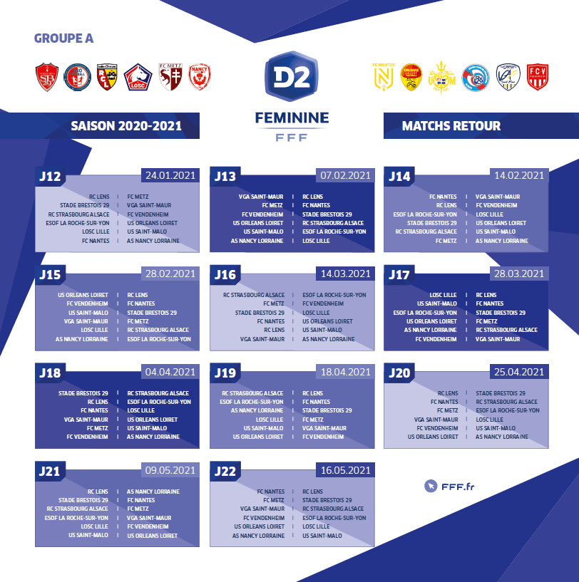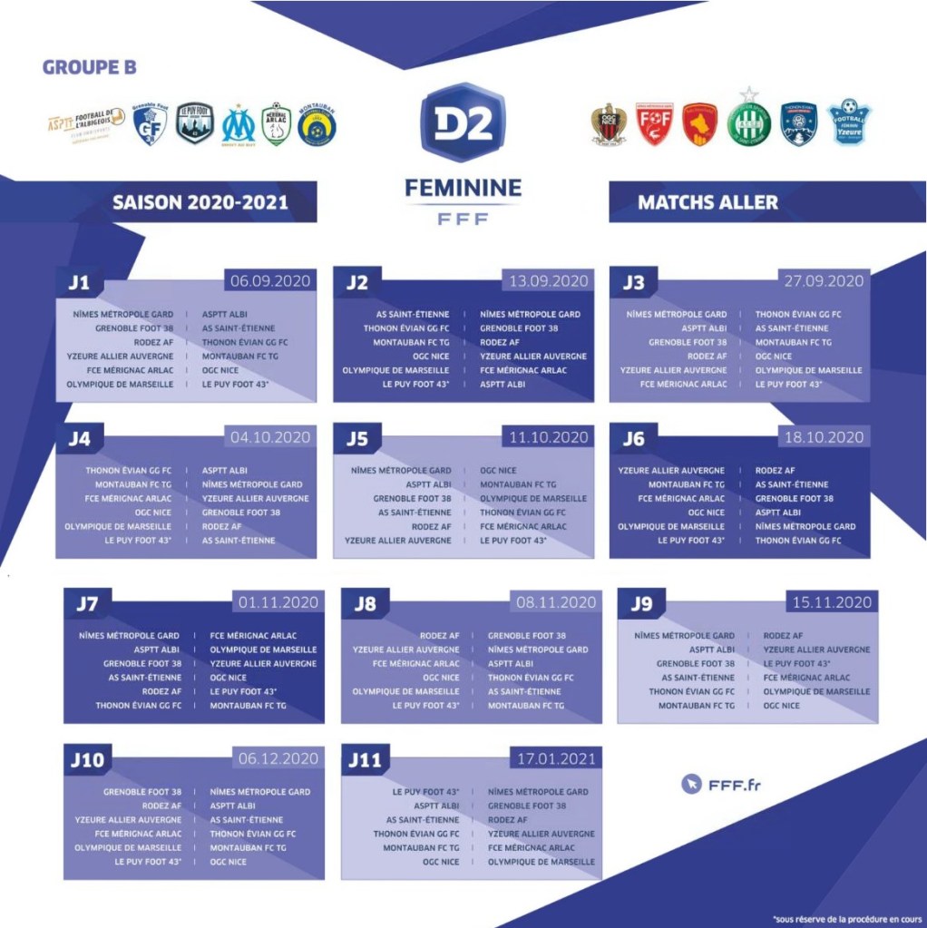 La Fédération Française de Football vient de communiquer les calendriers pour les équipes de D2 Féminine. Retrouvez le calendrier pour les équipes de la poule A et de la poule B.