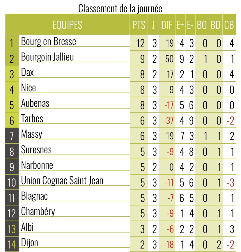 Troisième journée de championnat pour les équipes de la poule Nationale.