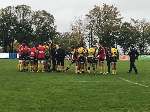Une minute plus tard, Caminati ajustait la mire pour ouvrir le score, sur la première incursion dans le camp local (13ème 0-3). Alors que l’on pensait que nos jaunes et noirs, après avoir laissé passer l’orage, s’étaient mis sur les bons rails, malgré une nouvelle perte de ballon et une pénalité à 30m, que Vincent Mallet ratait une nouvelle fois (15ème).