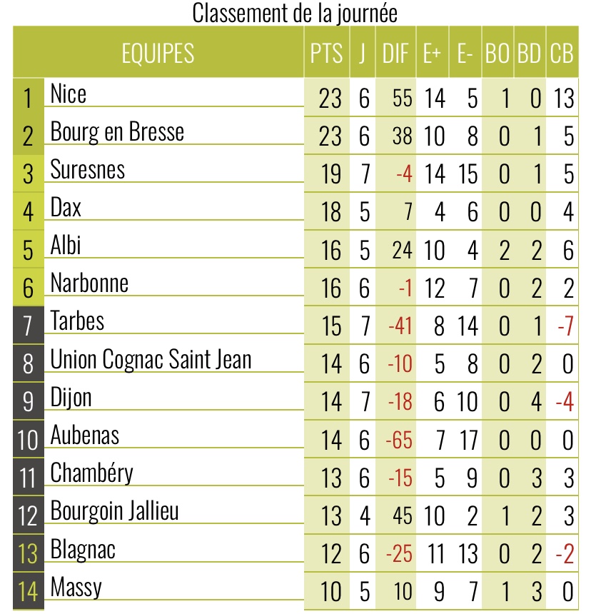 Cette journée de reprise de Nationale a tenu toutes ses promesses ! Des chassés-croisés, des victoires à la dernière minute, des scores ultra serrés … Bref, le championnat est de retour et la course à la qualif promet d’être haletante jusqu’au bout !