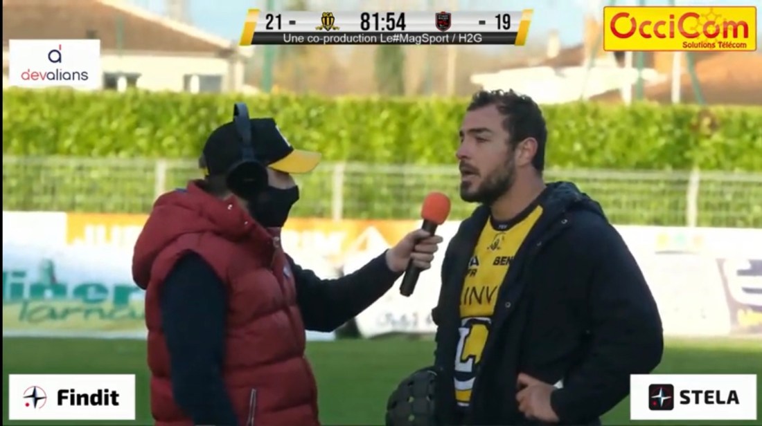 Retrouvez la réaction à chaud de Simon Pardakhty , après la victoire 21-19 des albigeois face au stade niçois lors de la 14 eme journée de nationale. Pour les albigeois et le Flandre allemano – Chilien qui ont fait trébucher pour la première fois de la saison les azuréens, un message fort a été envoyé à l’ensemble de la nationale.