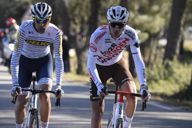 Lilian Calmejane avec Délio fernadez-Cruz lors de la première étape du Tour La Provence ( crédit photo L’Equipe)
