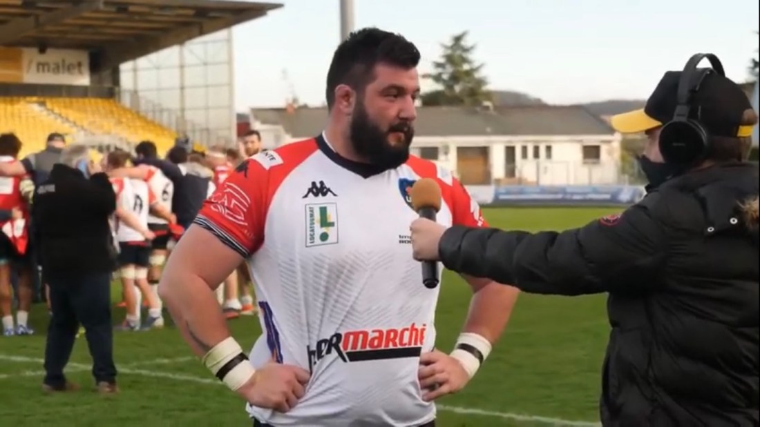 Le pilier droit de l’Union Cognac Saint Jean d’Angely, a répondu à chaud à nos questions, suite à la belle victoire bonifiée des charentais (22-34), au Stadium Municipal d’Albi. Lors de cette 18 eme journée de Nationale, le natif de la cité épiscopale et ex-joueur du SCA, ainsi que ses coéquipiers de l’UCS, ont largement dominé les tarnais dans l’ensemble des compartiments du jeu. Mickael Higonnet ne pouvait feindre son émotion après cette partie rondement menée par les cognaçais, qui les a vu mettre fin à une invincibilité des jaunes et noirs dans leur antre, courant depuis mai 2018. En définitive, une partie de bravoure pour les hommes du duo Tessandier/Lacombe qui font la belle opération comptable de ce week-end.