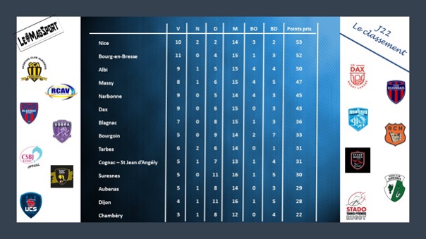 En attendant la suite des rencontres cet après-midi, petit point sur les résultats d’hier ainsi que sur le classement provisoire après l’opus 1 de la 22e journée de Nationale :