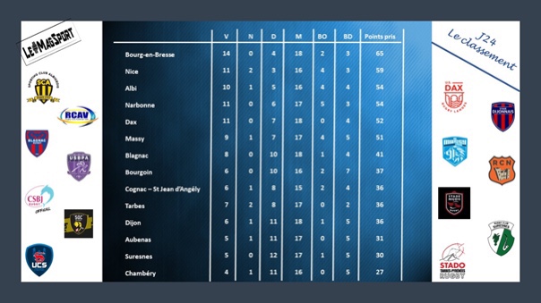 (BO) Bourg-en-Bresse 41 / 10 Cognac Saint-Jean d’Angély