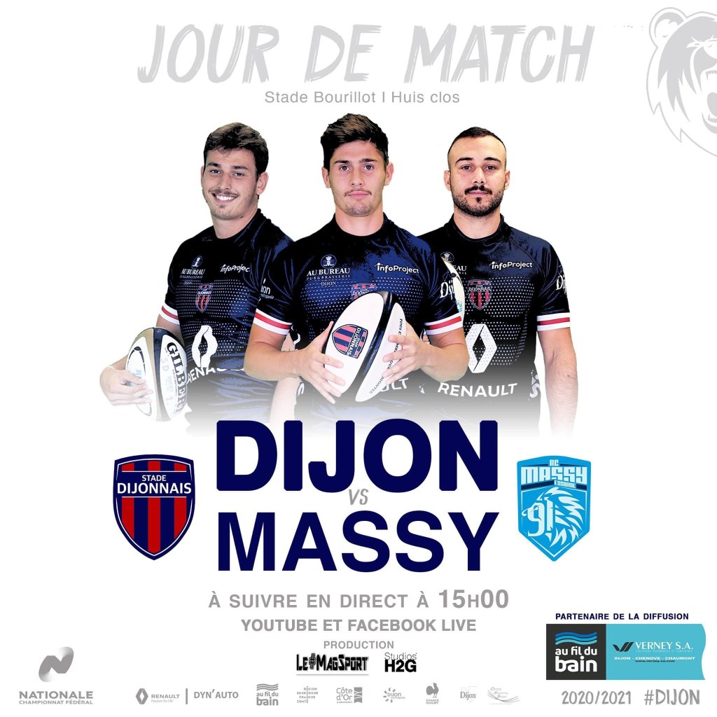 Retrouvez la rencontre Dijon Vs Massy 25eme journée Nationale en live vidéo dès 14h45