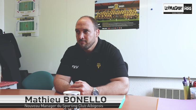 Mathieu Bonello pour sa première interview en tant que manager du Sporting Club Albigeois, nous a balayé les chantiers en cours depuis sa nomination. Entre le recrutement (entre autres d’une charnière), l’arrivée d’un adjoint, mais aussi la mise en place de sa méthode et de sa philosophie rugbystique, l’ex champion de France 2018 à la tête de l’ASV Lavaur, ne manque pas de travail. Celui qui a porté pendant plus d’une décennie le maillot castrais, nous explique tout au long de cet interview grand format, les préceptes acquis au cours de sa carrière, ayant forgé le « manager Bonello ». Membre de la bande de copains qui a soulevé le Brennus en 2013 avec le club de la sous préfecture tarnaise, cette histoire en jaune et noir est un nouveau livre qui s’écrit tant pour l’ex castrais que pour le club du président Roumegoux. Sans renier le passé et en portant un regard respectueux sur le travail de ses prédécesseurs, l’enfant de Gaillac veut élaborer sa propre cuvée et apporter sa touche à l’élaboration de ce « SCA nouveau ». Rencontre avec Mathieu Bonello, un nouveau patron du secteur sportif Albigeois voulant dépolariser l’objectif Pro D2, mais conscient de l’attente et de l’exigence de réussite qu’engendre naturellement le SCA.