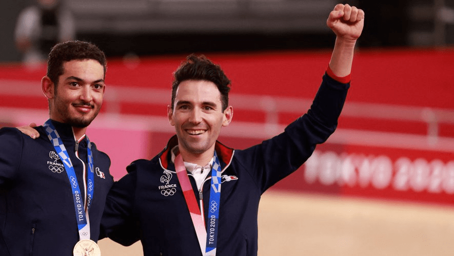 48 heures après, il était appelé à défendre les couleurs tricolores dans la course à l’américaine, avec Donavan Grondin, tout juste âgé de 21 ans. Le jeune réunionnais a été préféré à Morgan Kneisky pourtant plus expérimenté (33 ans), et complice de toujours, de Benjamin Thomas, dans une épreuve dans laquelle il faut allier tactique de course, vitesse, endurance, placement et agilité.La paire inédite, mais qui prépare aussi les JO de Paris, obtient une belle et prometteuse 3éme place, synonyme de médaille de bronze derrière les Danois et les Britanniques.