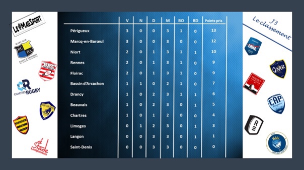 Le résultat de la rencontre de la 1ère journée entre Bassin d’Arcachon et Chartres est pour l’instant gelé par la FFR