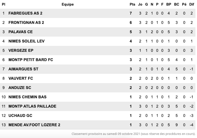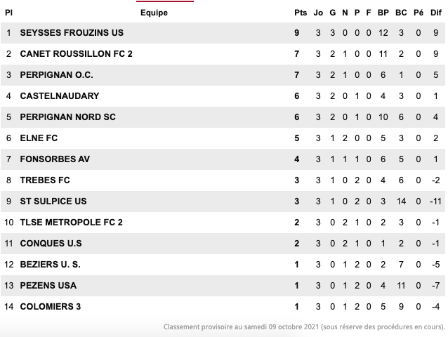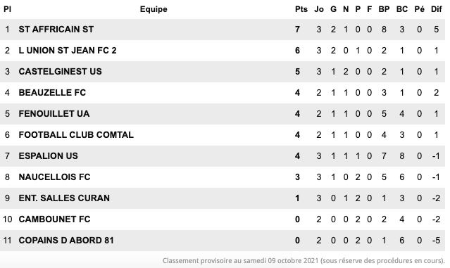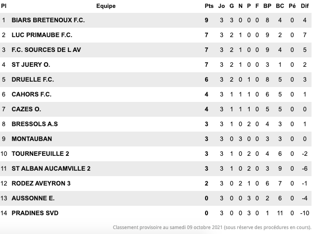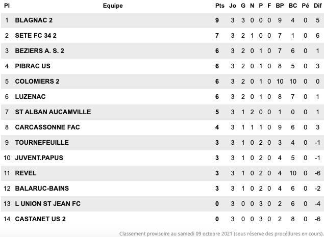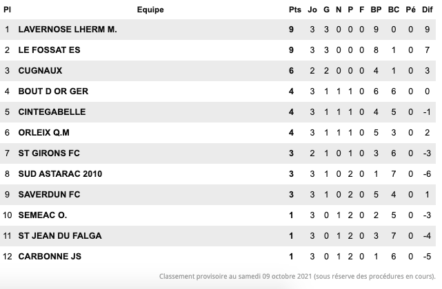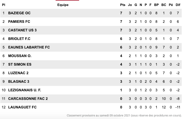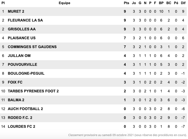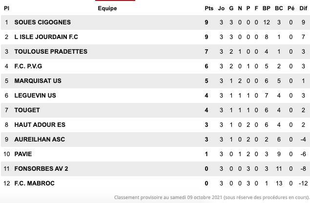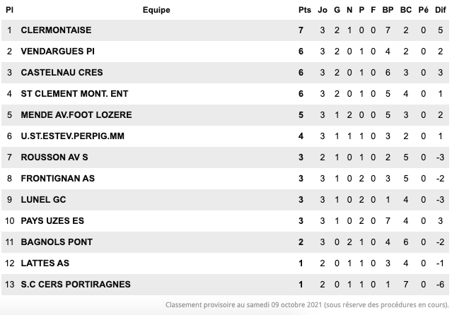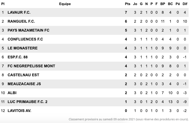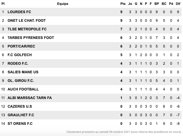 4 commentaires sur “#Foot – Les résultats et classements du week-end de la National 1 à la Régional 3 !”