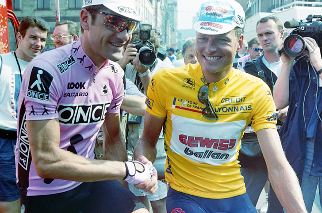 Laurent Jalabert et Bjarne Riis deux anciens vainqueurs du Tour du Parc du Haut-Languedoc ( crédit photo BikeRaceInfo)