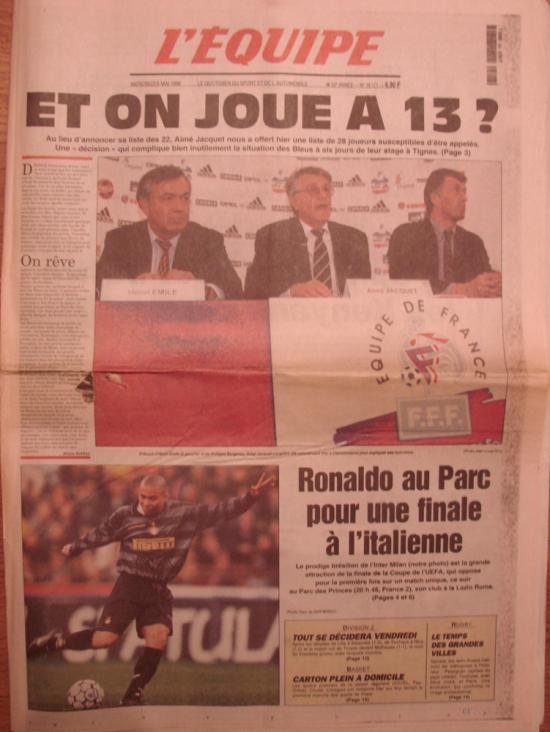 Je me souviens, en grand fan de ballon rond sortant du collège de cette une de l’équipe placardée dans la maison de la presse du Vigan d’Albi : « Et on joue à treize…? ». Ce titre est la quintessence de ce que la méchanceté ou l’acharnement peuvent faire écrire comme idiotie historique. La référence du sport français venait de décrier un précurseur pour avoir convoqué 28 joueurs au lieux des 22 réglementaires à l’époque , dans ce qui deviendrait quelques années la norme de toutes les sélections préparant une échéance internationale. Certes, le déchirement de voir partir 6 compagnons en catimini n’est pas le moment le plus humain d’une préparation de coupe du monde mais malheureusement, la simple rationalisation d’un football européen aux cadences infernales qui amenaient souvent certains de ses acteurs à finir sur les rotules leur saison en club. Aimé Jacquet n’a jamais voulu laisser de part au hasard, en bon ancien vert de Saint-Etienne ayant vu la génération lui ayant succédé dans le Forez, briser ses rêves de gloire européenne face au destin d’un stade écossais aux poteaux carrés. Mais le « Jacquet Bashing » a la mode 98 altérait souvent l’analyse des scribes et chroniqueurs de l’époque pour ne se concentrer que sur l’aspect primaire d’une décision, au lieu de s’évertuer à décortiquer quelle pouvait être la profondeur et le but ultime de tel ou tel choix . Malgré la souffrance de ses proches, malgré les blessures intimes qui en résulteront, Aimé Jacquet, tel les explorateurs des siècles antérieurs, a tracé son chemin sans se retourner avec juste l’ardente conviction de trouver les cimes au bout d’un chemin de croix médiatique.