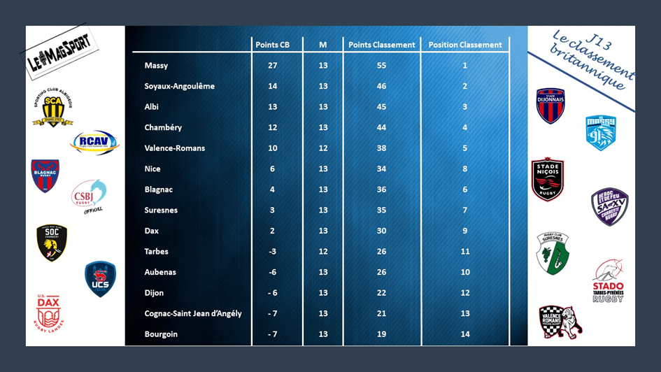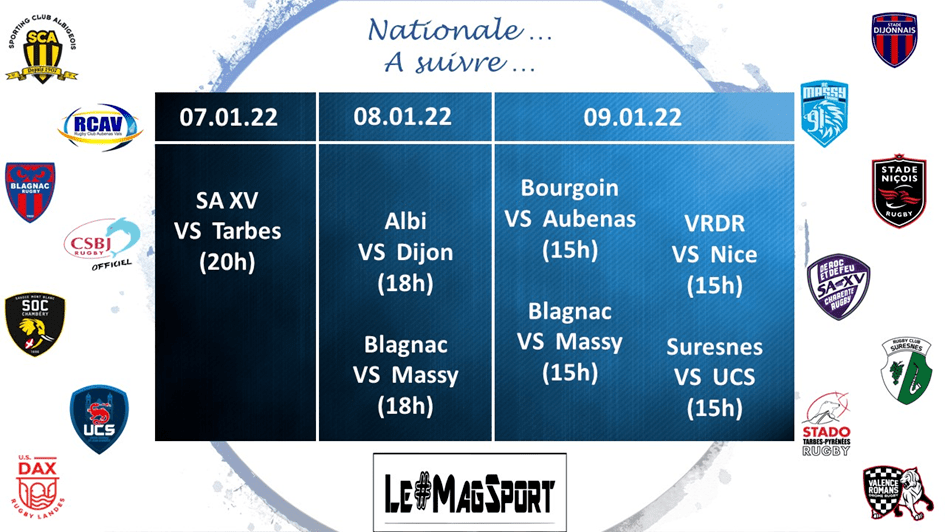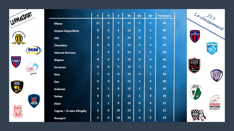 Où s’arrêtera Massy ? Le SA XV restera t’il sur la lancée ? Le VRDR se reprendra t’il ? Albi et Chambéry continueront-ils à jouer les trouble-fête ? Suresnes, Blagnac, Dax et Nice se tireront-ils la bourre pour arracher l’une des places en play-off jusqu’au bout ? Qui s’en sortira pour échapper à la Nationale 2 ?