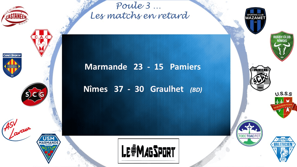 Quatre matchs en retard se jouaient aujourd’hui en poule 1, 2 et 3, tous les autres ayant été reportés en 2022.