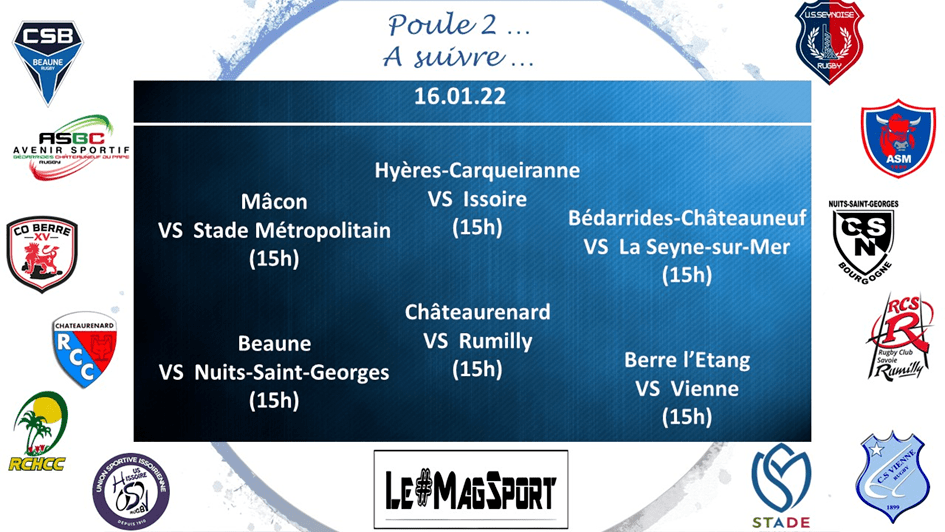 Quant à la rencontre de la J12 entre Berre l’Etang et Nuits-Saint-Georges, elle a été reportée au 06.03.22.