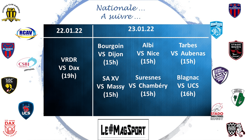 Cette 15e journée de championnat de Nationale était synonyme de victoires à la maison. Sur 6 rencontres disputées (Dijon / SA XV ayant dû être reporté pour cause de terrain gelé), 5 ont vu les hôtes du jour l’emporter sur leur terrain.