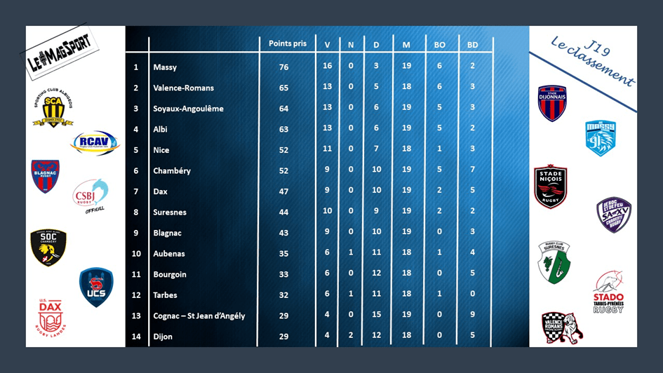 Chambéry aurait pu l’emporter dans les toutes dernières secondes mais Albi a fait le dos rond et a sorti sa défense made in « de fer » pour conserver ses 6 points d’avance. Bilan des courses, le SCA s’installe fermement à la 4e place tandis que le SOC va devoir faire très attention à la meute derrière lui.