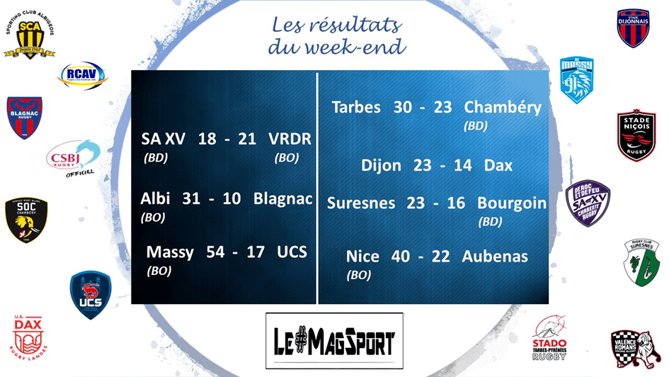 Les prochains matchs en retard se joueront le 10.04.22 avec 3 rencontres au programme : VRDR / Nice pour le compte de la J14 ainsi que Bourgoin / Dijon et Tarbes / Aubenas, tous deux pour la J16