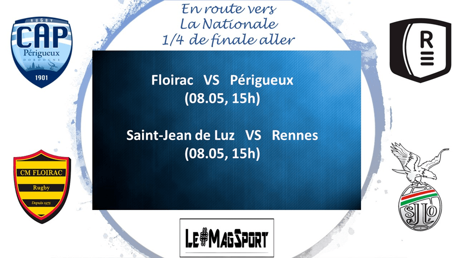Périgueux a assumé jusqu’au bout son statut de leader. Déjà large vainqueur de Tyrosse à l’aller, le CAP a encore une fois marqué plus de 40 points et formalisé sa place en ¼ de finale. Fleurance regrettera très certainement son match de l’aller totalement manqué à Rennes. La victoire d’aujourd’hui face au REC ne servira malheureusement à rien, le débours de point étant trop conséquent et ce sont bien les Bretons qui filent en ¼. Floirac, l’équipe qu’on n’avait pas vu venir, sera elle aussi bien présente au tour suivant. Bien que battus à Auch, l’avance prise au match aller a été suffisante pour que la saison parfaite du CMF perdure encore. Enfin, très belle performance de Saint-Jean de Luz, qui a validé sa victoire de l’aller en s’imposant à Niort, où il n’est vraiment pas facile de s’imposer. Les Basques sont revenus très forts sur cette fin de saison et le prouvent une nouvelle fois avec cette qualification ¼ de finale.