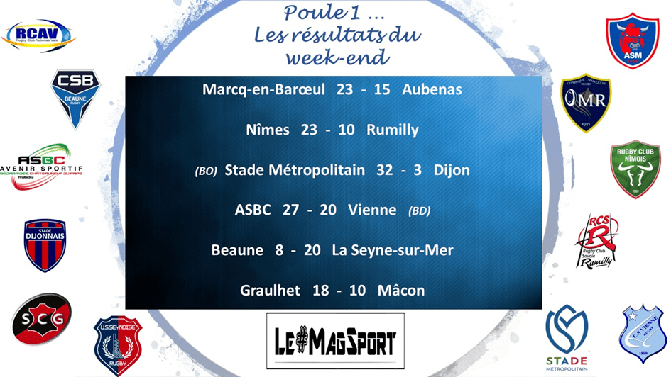 Autre équipe très en forme du moment, le Stade Métropolitain n’a pas fait de détail face à Dijon, qu’ils avaient déjà battu en match amical de présaison, en remportant la rencontre avec bonus offensif dans la poche. Ils prennent donc la tête du classement provisoire tandis que les Dijonnais se retrouvent un peu à la peine.